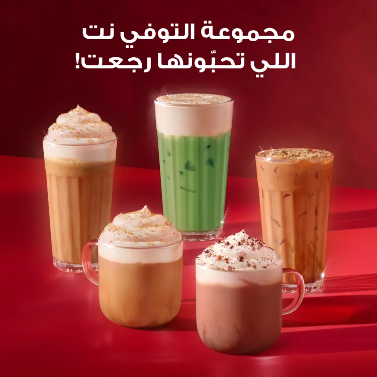 استمتعوا فيه بالطريقة الكلاسيكية أو بالفرابتشينو. ولعشاق الماتشا نزلنا لكم إصدار جديد: توفي نت ماتشا لاتيه! ولمحبين الشوكولاتة، نقدم لكم مشروب هوت شوكلت فادج براوني اللذيذ.