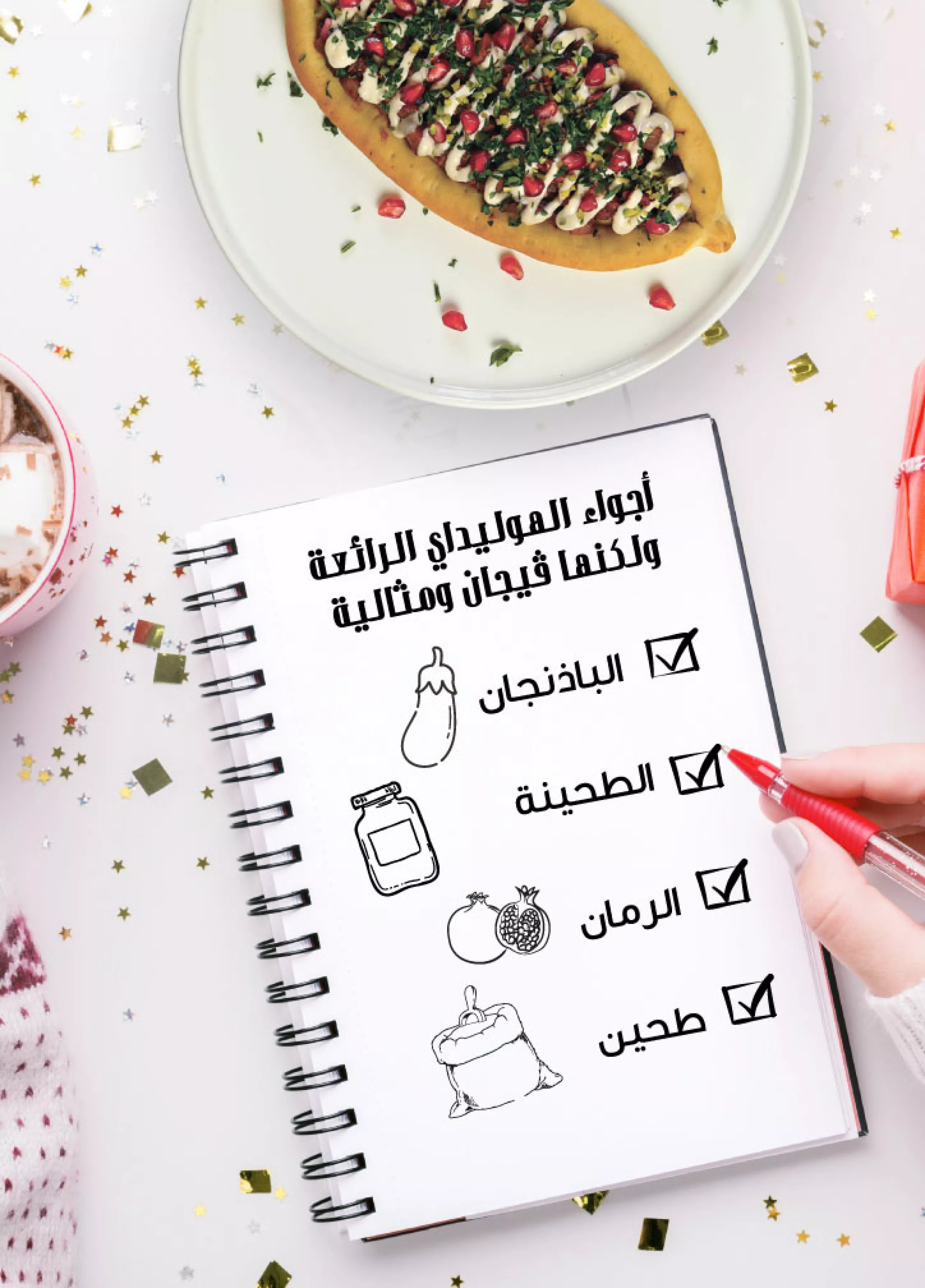 تذوق البيدا الشهية الرائعة المذاق المحشوة بسوتيه الباذنجان والبصل والثوم والبهارات والسماق ويعلوها رمان وطحينة. استمتع بأوقات لا تنسى في موسم العطلات وأنت تجلس مع أصدقائك وعائلتك تتشاركون ألذ وجبات الموسم.