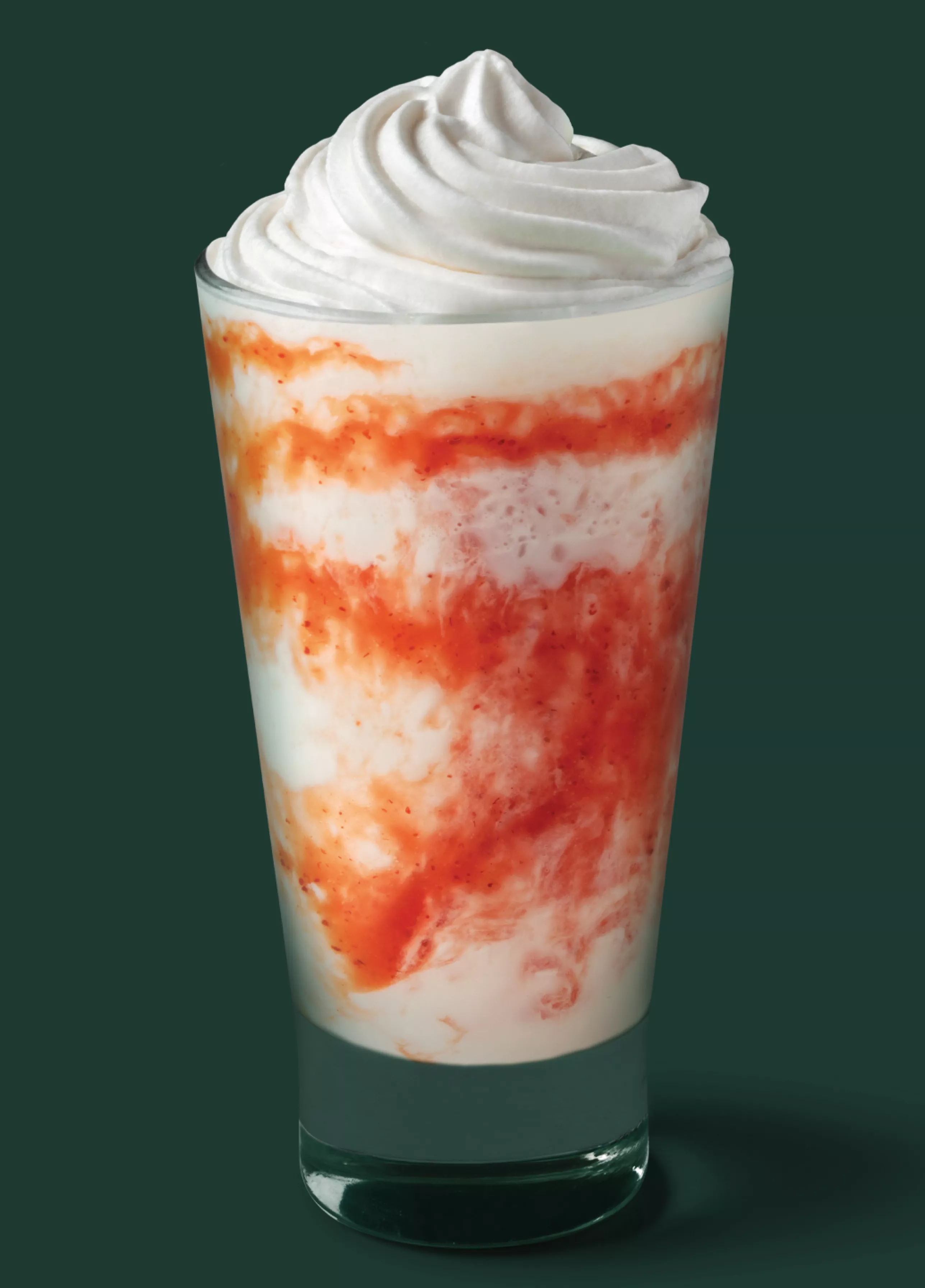 نكهة كريمة "فرابتشينو" ممزوجة مع حليب، نكهة كاراميل وثلج. يعلوها كريمة مخفوقة وصلصة كاراميل.