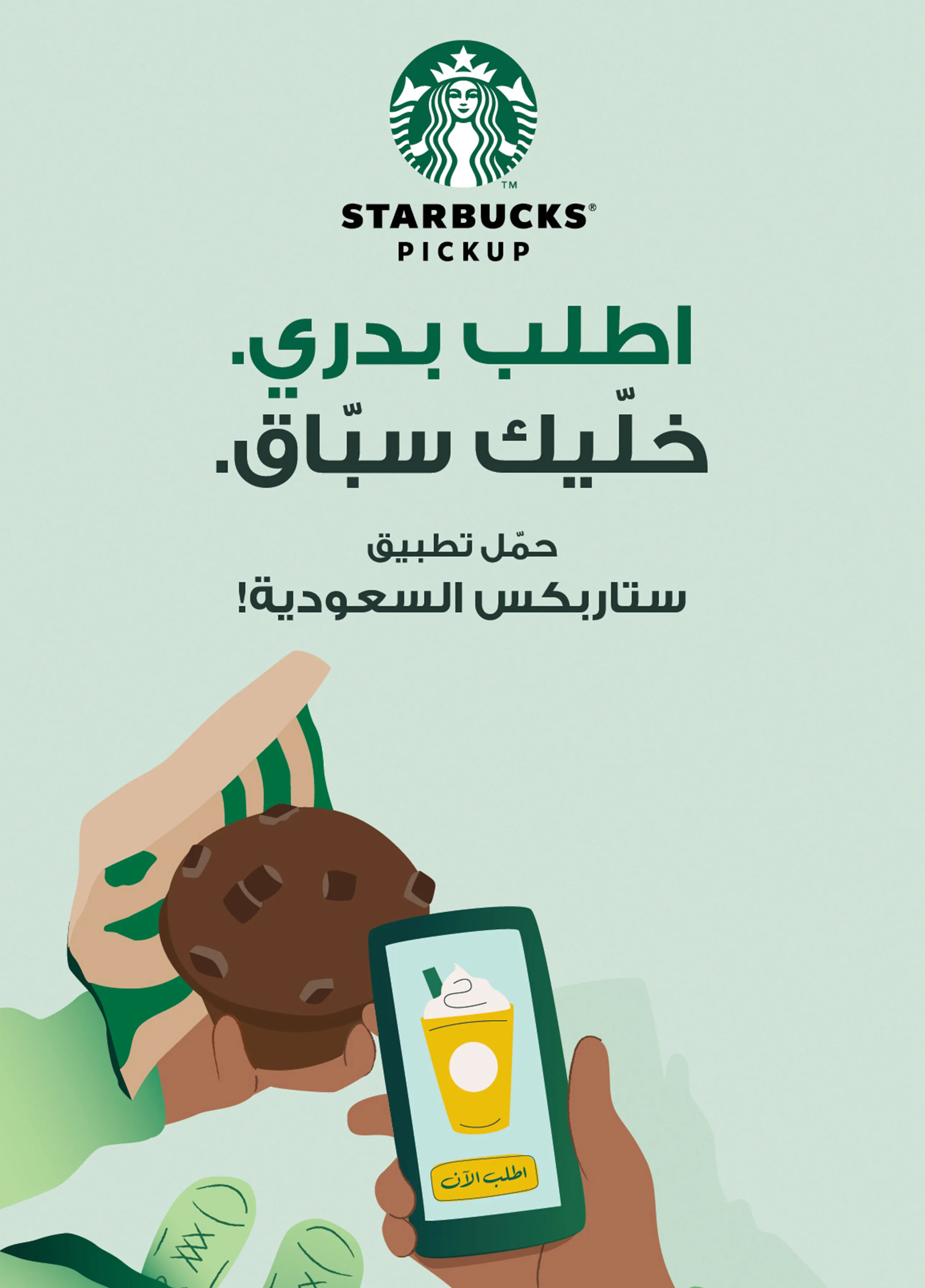 خدمة استلام الطلبات هي ميزة موجودة في تطبيق ستاربكس Starbucks® KSA لأجهزة iPhone® وأجهزة Android®. للبدء باستخدام هذه الخدمة، حمّل آخر إصدار من تطبيق Starbucks® KSA لأجهزة آيفون أو أندرويد! يمكنك الانضمام لبرنامجنا عن طريق التسجيل عبر موقعنا الإلكتروني أو عبر تطبيق Starbucks® KSA، قم بتفعيل خدمة اللوكيشن على جهازك لنتمكن من إظهار مقاهي ستاربكس التي توفر هذه الخدمة في منطقتك، وعندها تكون جاهزاً للطلب.