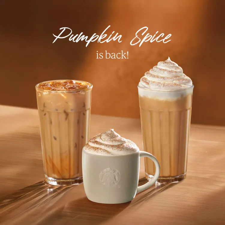 The autumn favourites you wait for all year have finally arrived! Treat yourself to the Pumpkin Spice Latte. Or cool down with the Iced Pumpkin Spice Latte and the Pumpkin Spice Coffee Frappuccino. And for the first time ever, say hello to the Iced Pumpkin Spice Matcha Latte. Where vibrant matcha meets autumn's signature flavours in a refreshing and unexpected new twist.